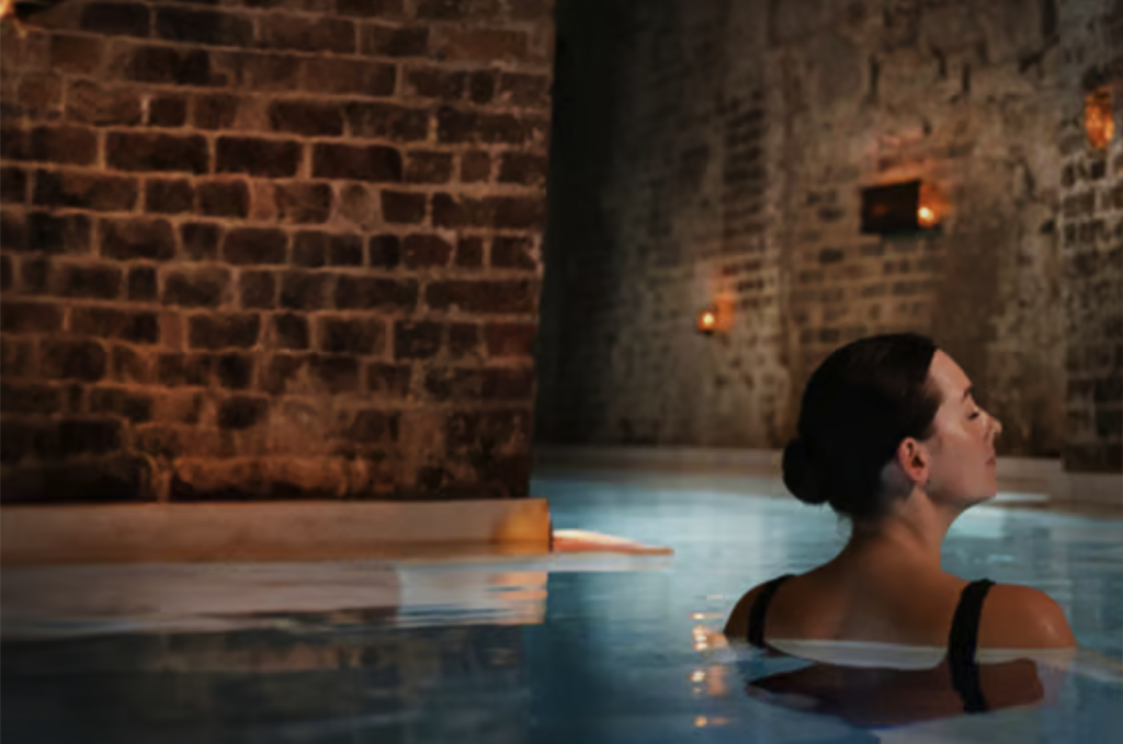 The co-ed lounge and shared hydrotherapy areas make this spa especially inviting for couples. Its mix of historic architecture and modern wellness design sets the tone for a day that feels both grounding and indulgent.